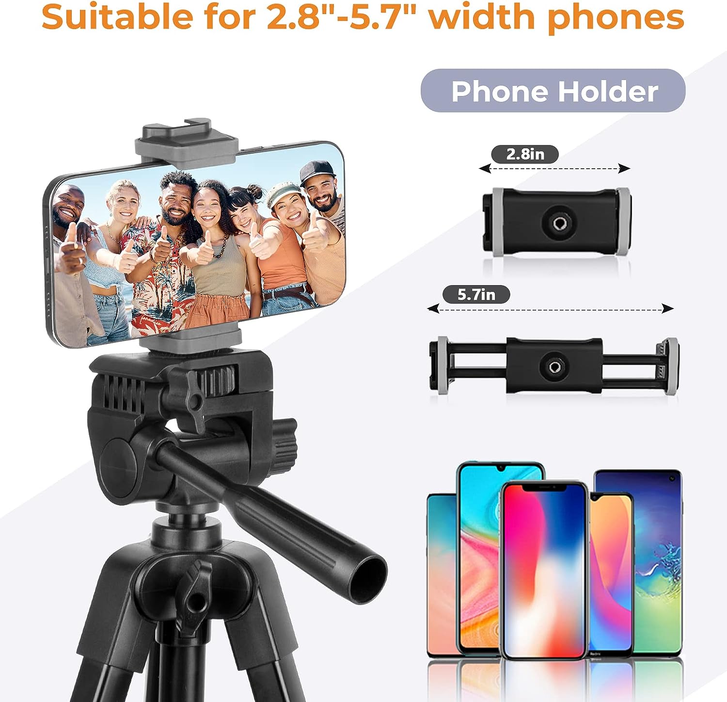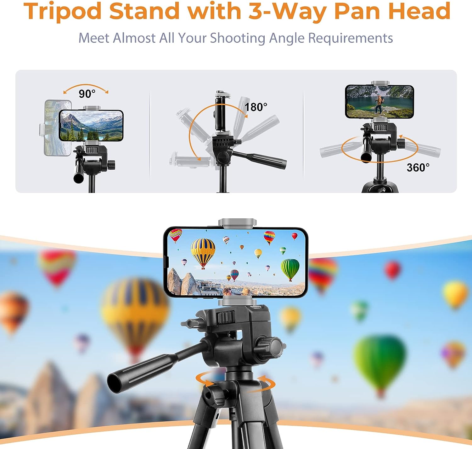 【High Quality & Portable Tripod】Made of premium aluminum alloy material, Torjim 64” phone tripod is super sturdy and durable. This iPhone tripod’s flip-lock leg design makes its setup quite easy, and its folded height of only 17” makes it easy to be carried around and record wonderful moments.
