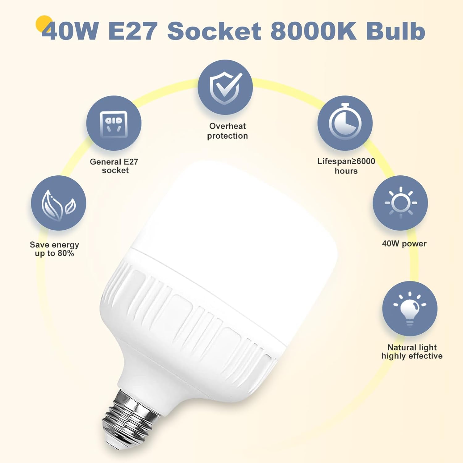 【What? How Is This Possible?】Softbox photography lighting kit is equipped with two 40W energy-saving bulbs, 8000K daylight CFL lighting bulbs, which can save energy up to 80%, the bulbs can not only work in low temperature environment, but also the bulb lifespan is more than 10,000 hours. While saving power, it also provides continuous uniform light, providing a good photographic environment.
