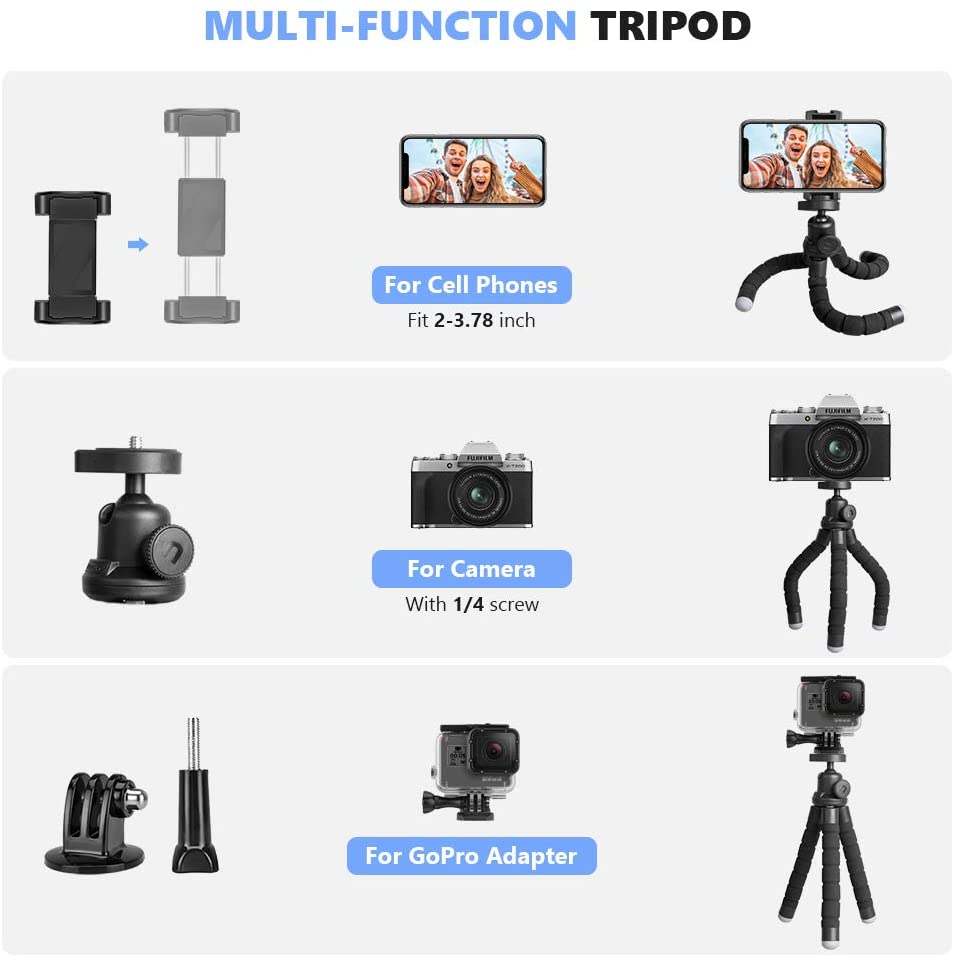 【Lightweight & Easy Carry】 Designed with 10"size and weighs 150g. It is so lightweight and compact that you can put it in your pocket and take it anywhere. What you get: 1 x Flexible Tripod (default GoPro adaptor), 1 x 1/4” Screw Adapter, 1 x 360° Phone Holder, 1 x Wireless Remote, 1 x User's manual. We care about our customer experience. so we have provided the lifetime customer service to ensure you are satisfied with our products.